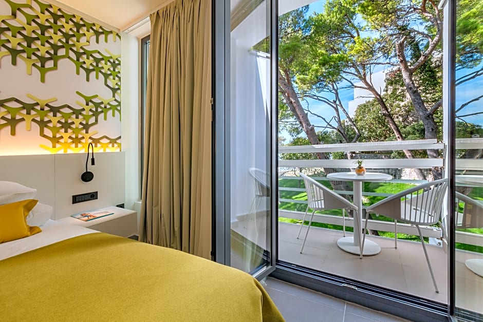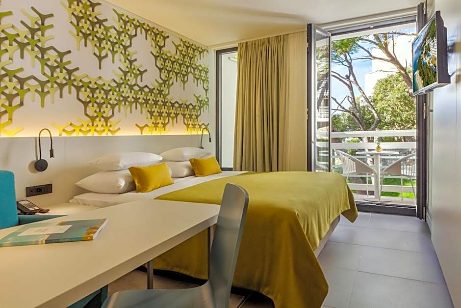 Standard double room, balcony - single use is 205 square feet and includes 2 single beds 80-130 width plus balcony, desk, satellite tv , hairdryer, and safe.